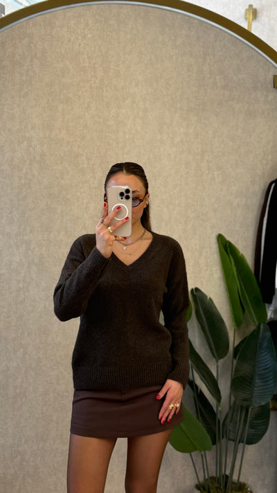 V YAKA YUMOŞ KAHVE TRİKO KAZAK