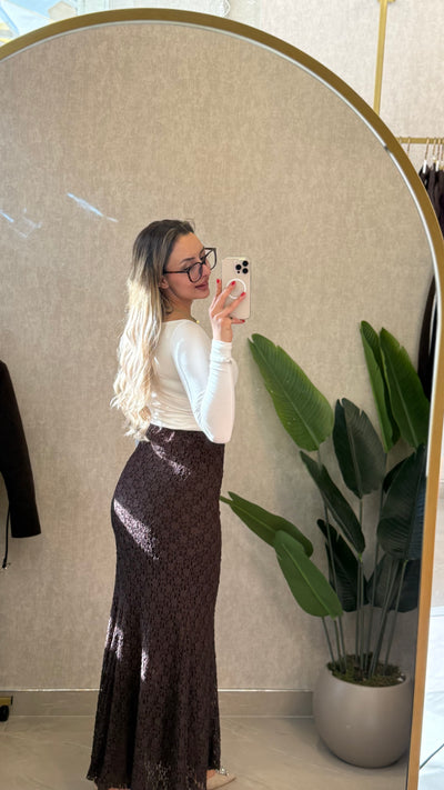 LİKRALI ASTARLI DANTEL MAXI KAHVE ETEK