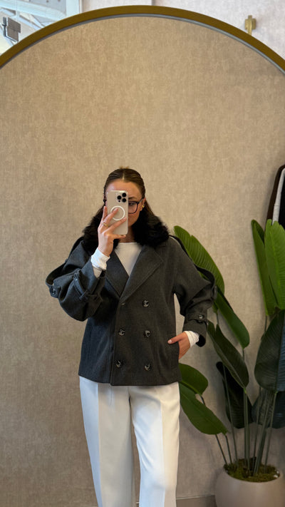 KÜRK YAKA (ÇIKARILABİLİR) ANTRASİT KAŞE KABAN