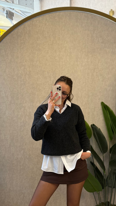 V YAKA YUMOŞ ANTRASİT TRİKO KAZAK