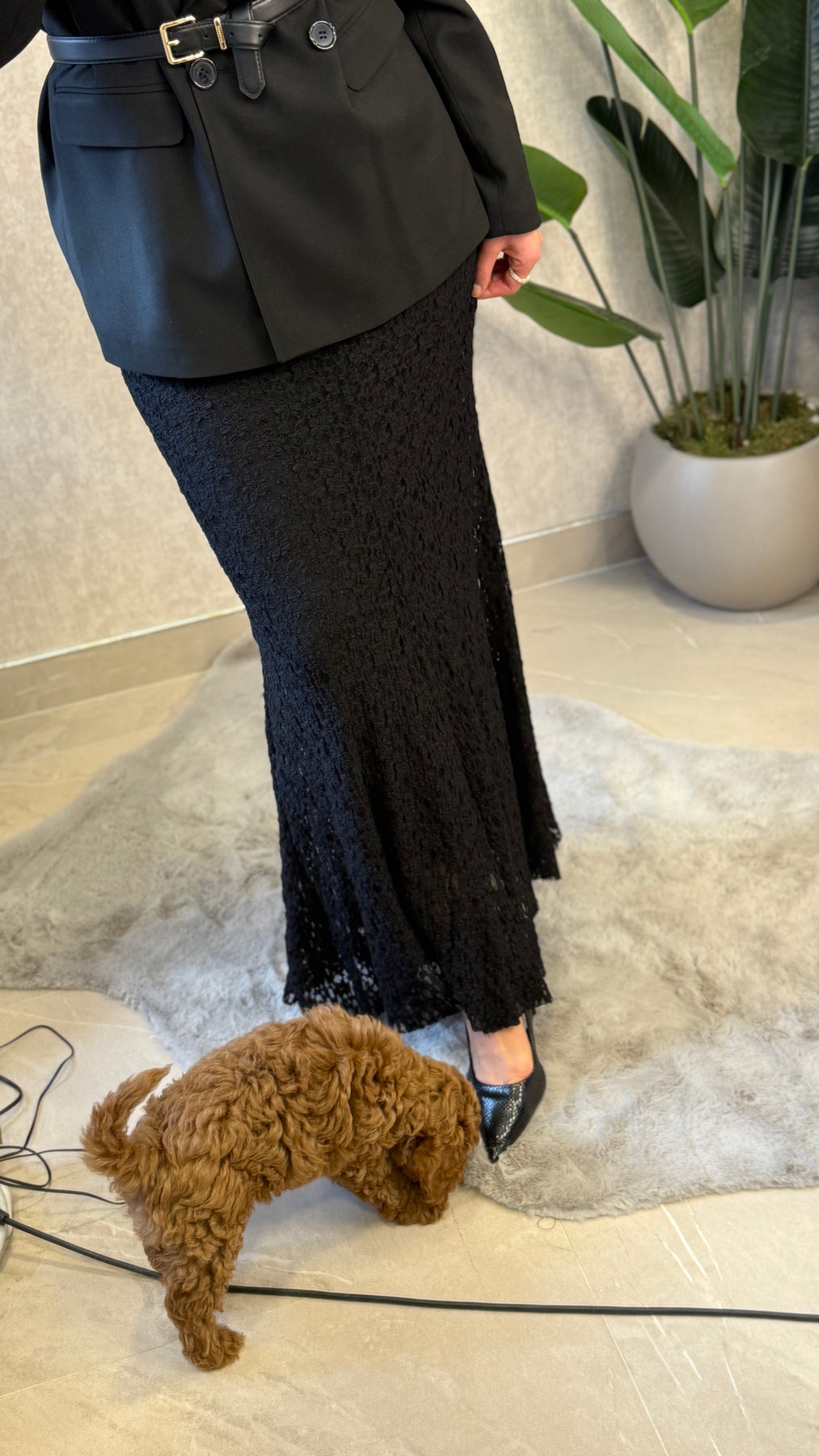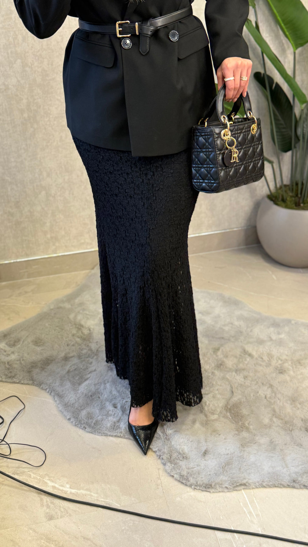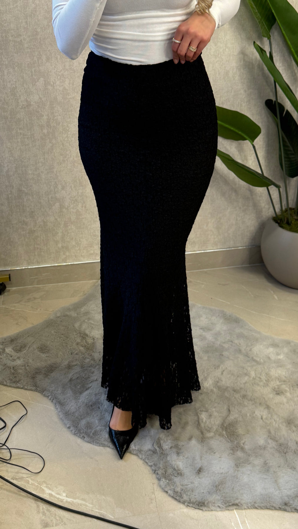 LİKRALI ASTARLI DANTEL MAXI SİYAH ETEK