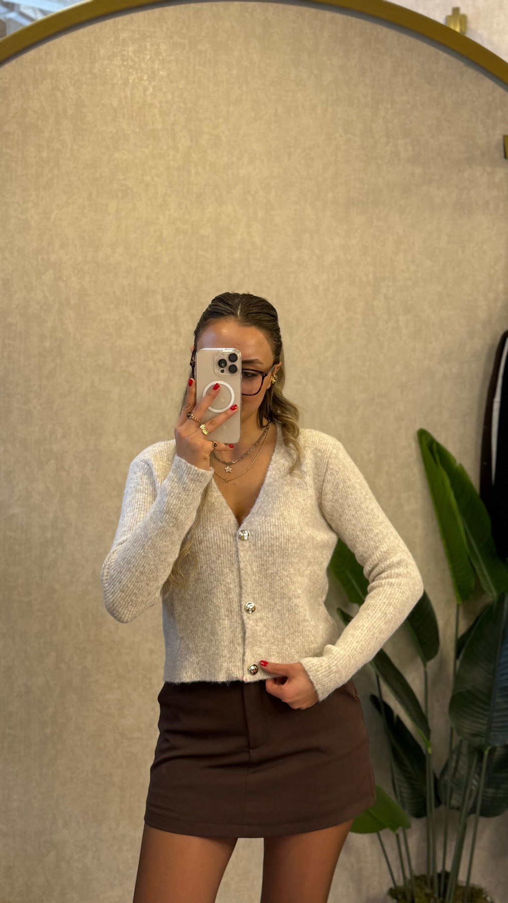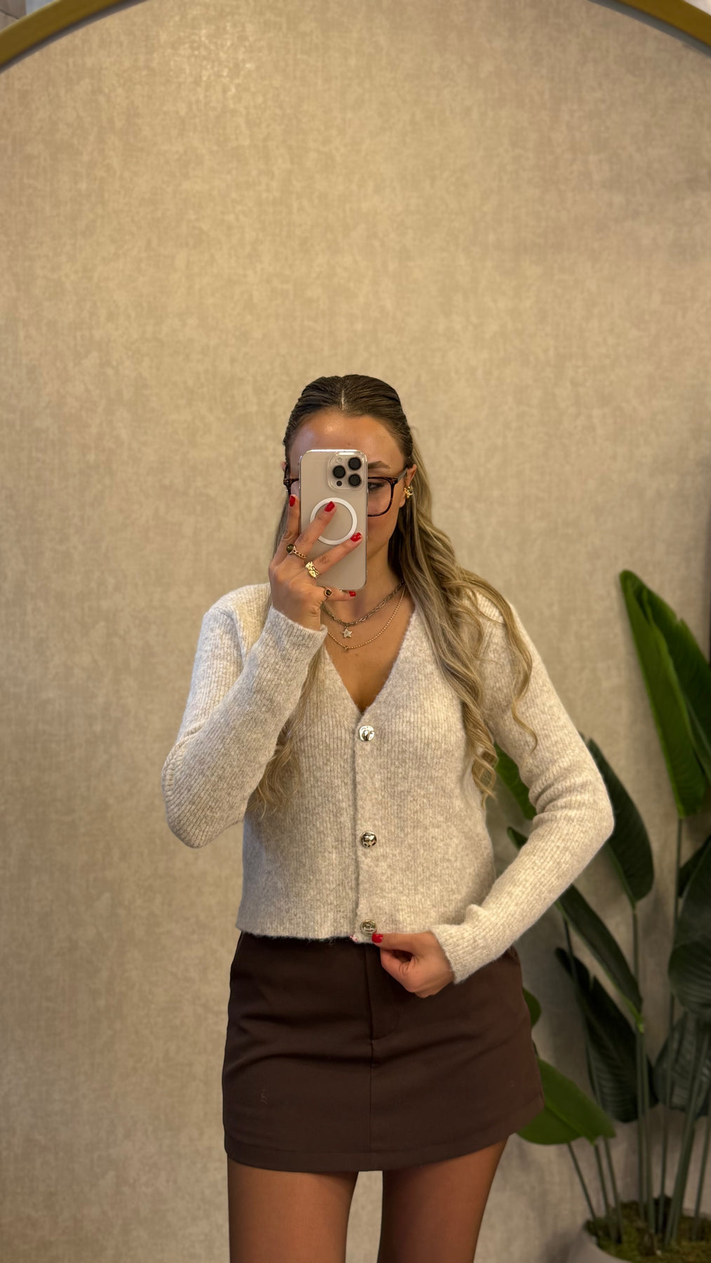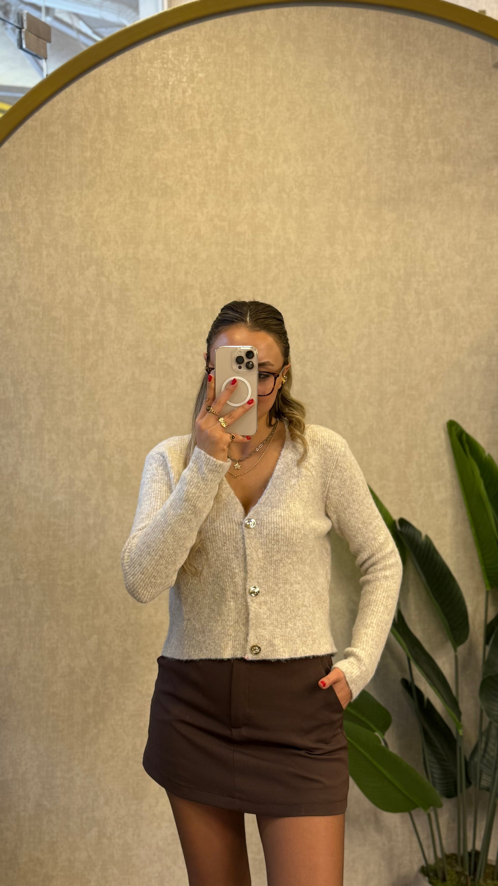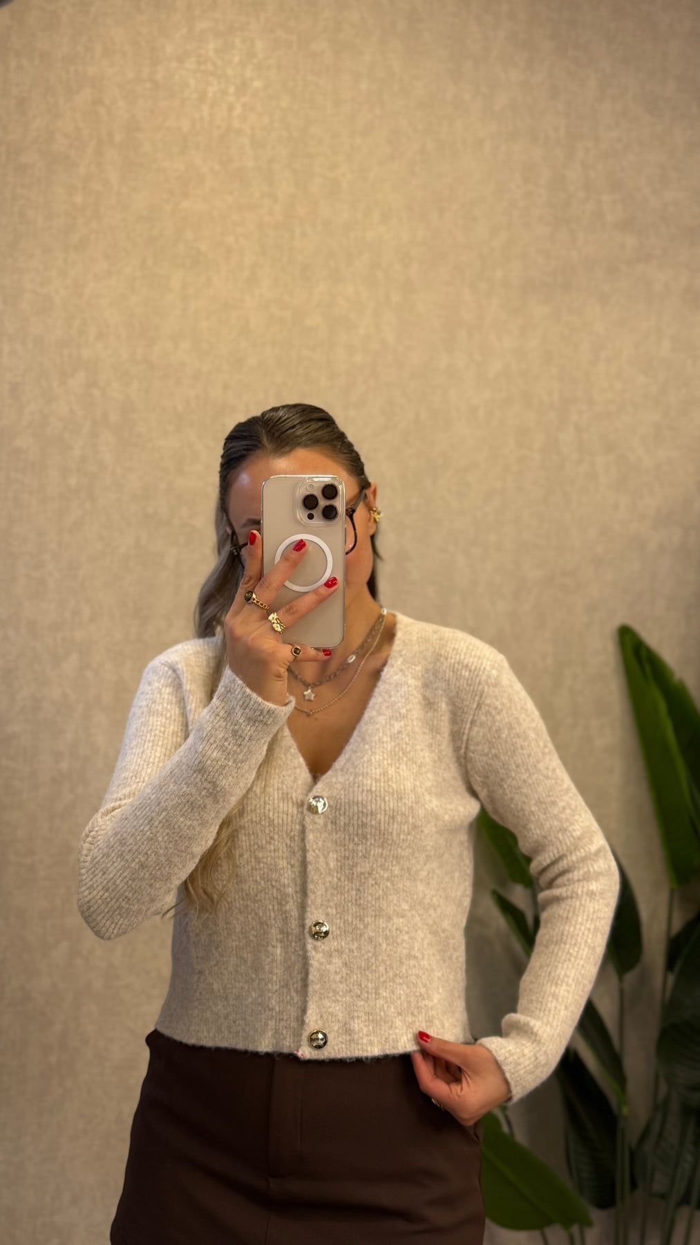 Yumuşak dokulu triko yapısı ve V yaka kesimiyle feminen ve zarif bir duruş sunar. Esnek kumaşı sayesinde gün boyu konfor sağlarken, düğmeli tasarımıyla hem tek başına hem katmanlı kombinlerde rahatlıkla kullanılabilir. Günlük şıklık için zamansız bir parça.