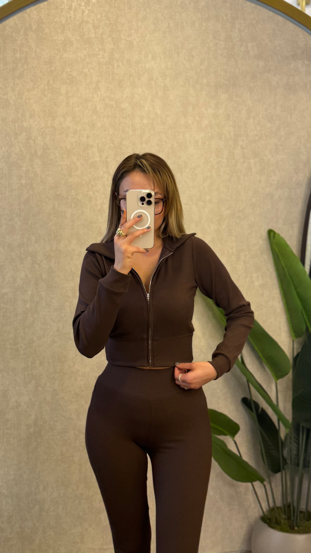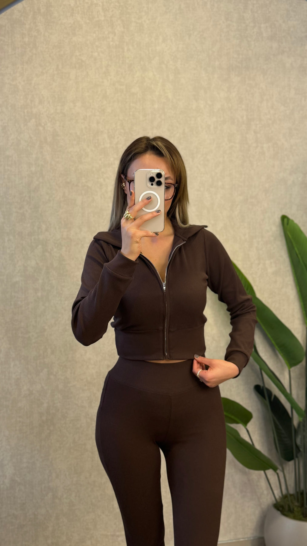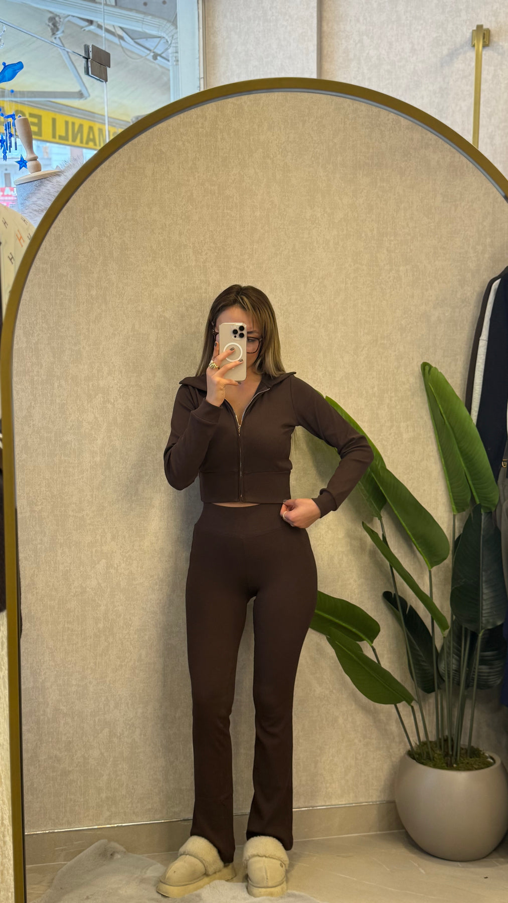 FİTİLLİ ESNEK KUMAŞ KAHVE EŞOFMAN TAKIMI