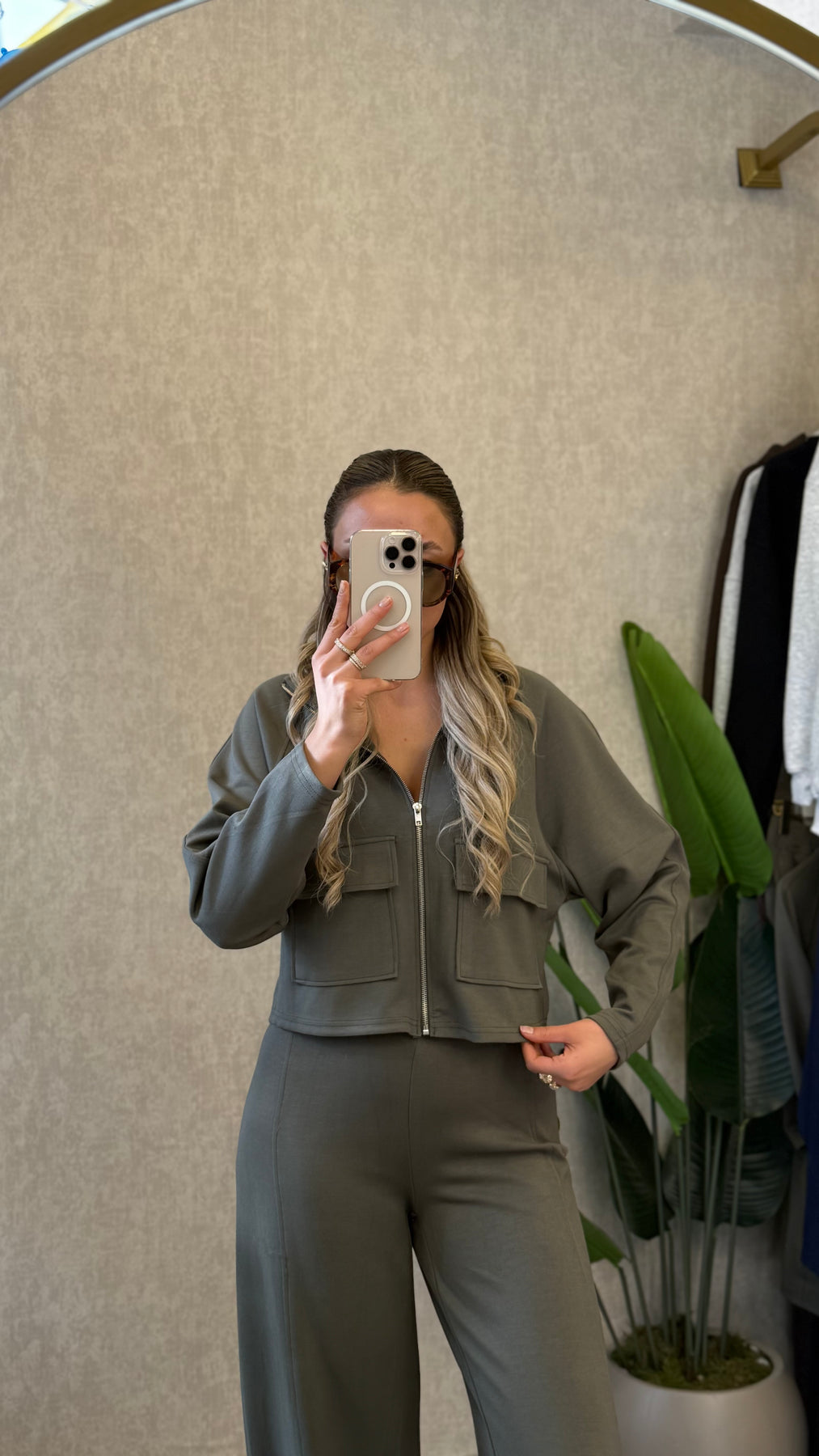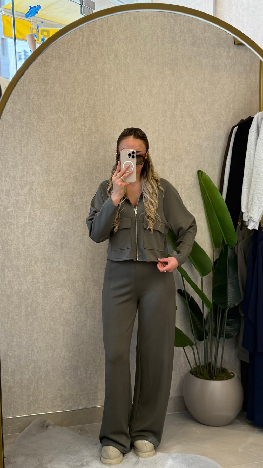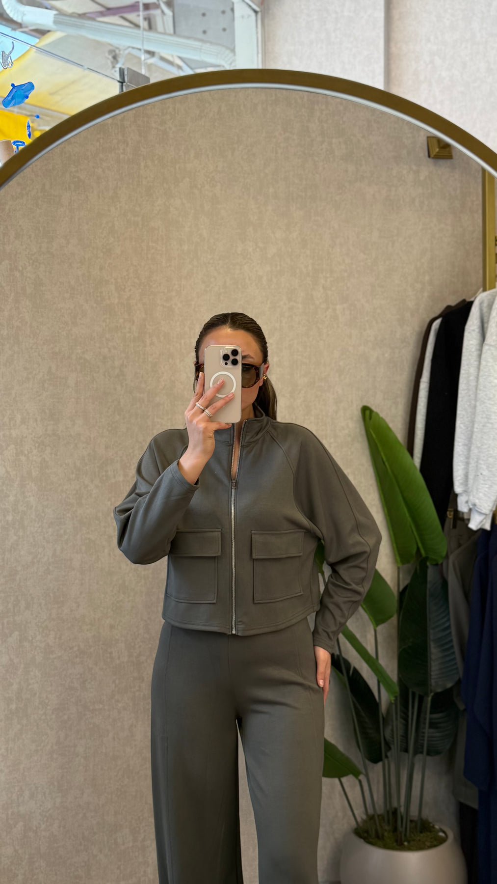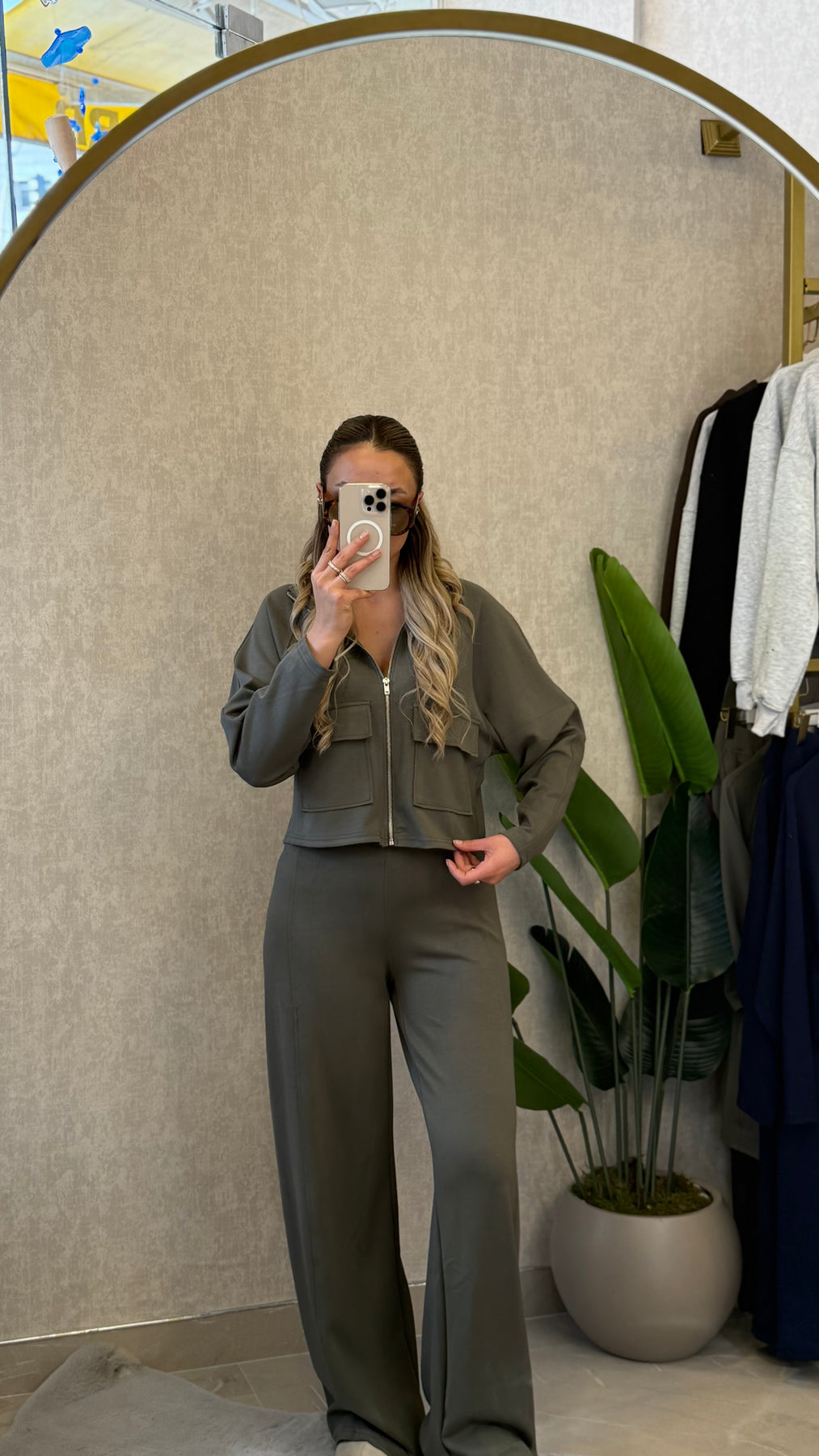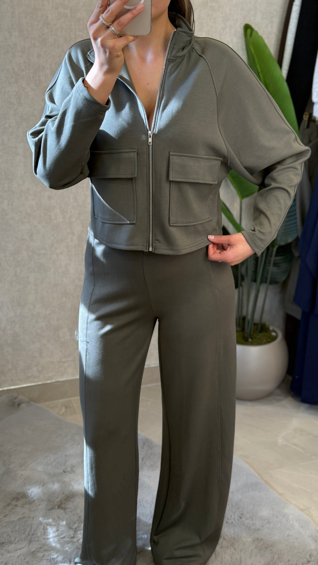 MODAL KUMAŞ PREMIUM FERMUARLI PALAZZO HAKİ TAKIM