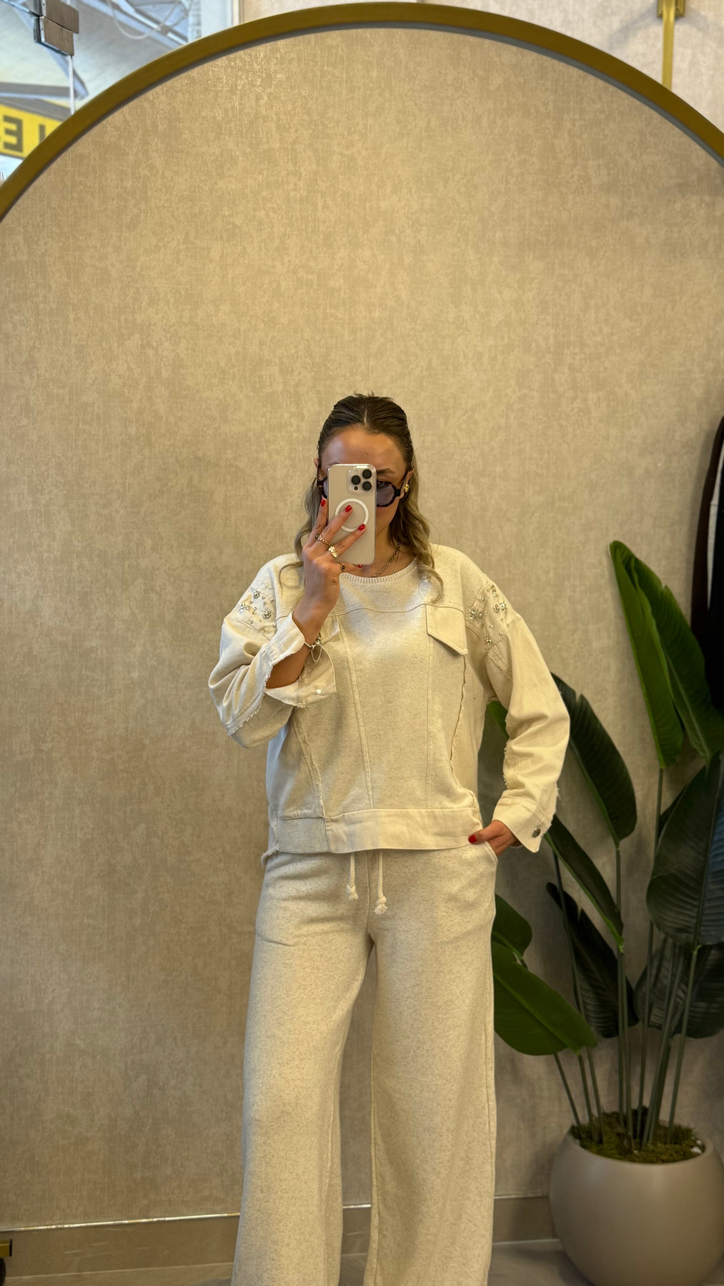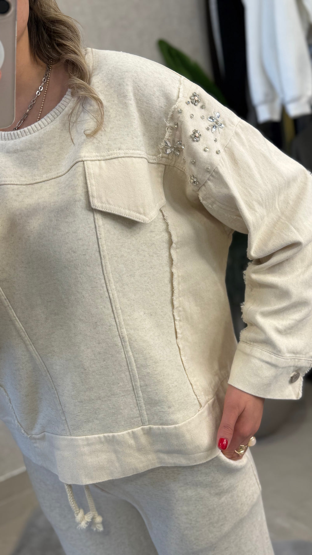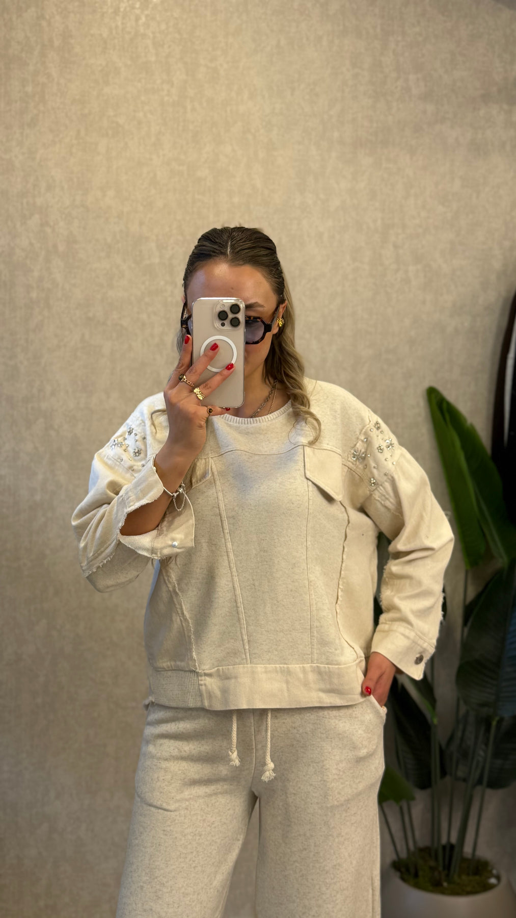 OMUZ TAŞ DETAYLI KREM TASARIM TAKIM