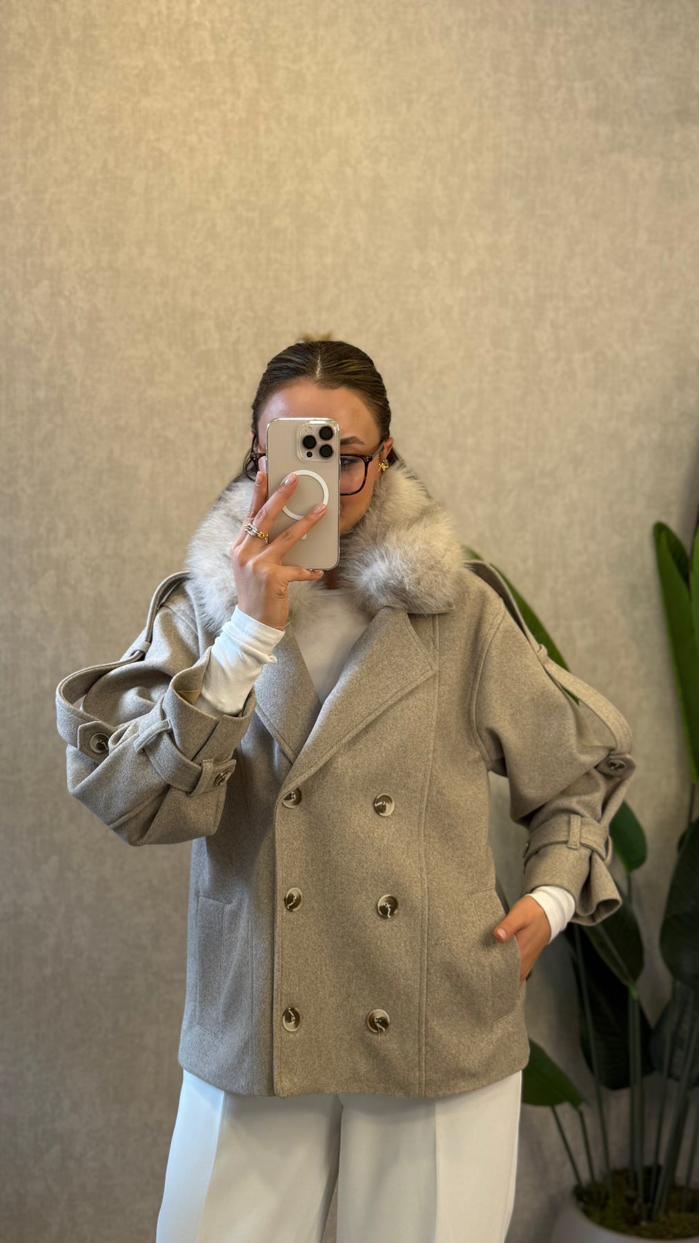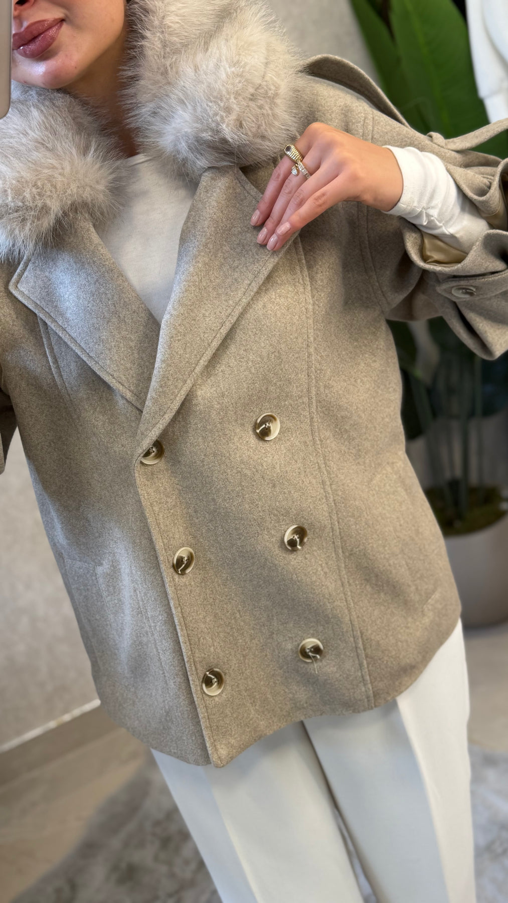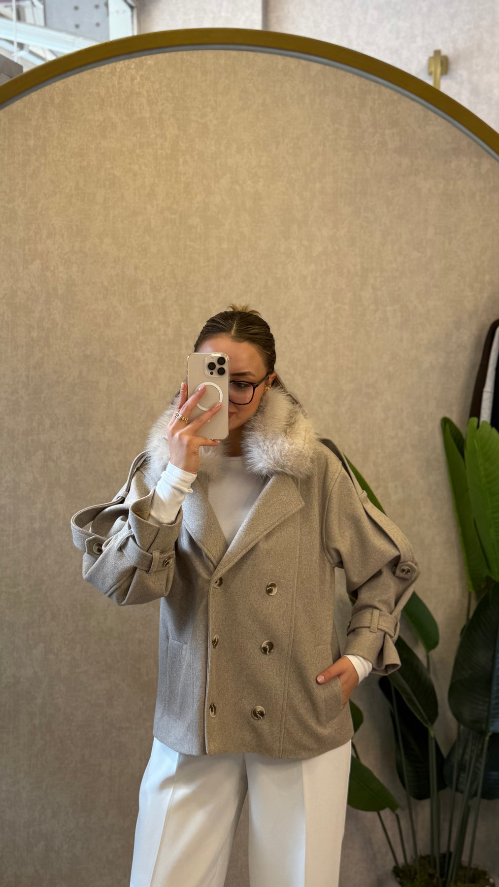 KÜRK YAKA (ÇIKARILABİLİR) VİZON KAŞE KABAN