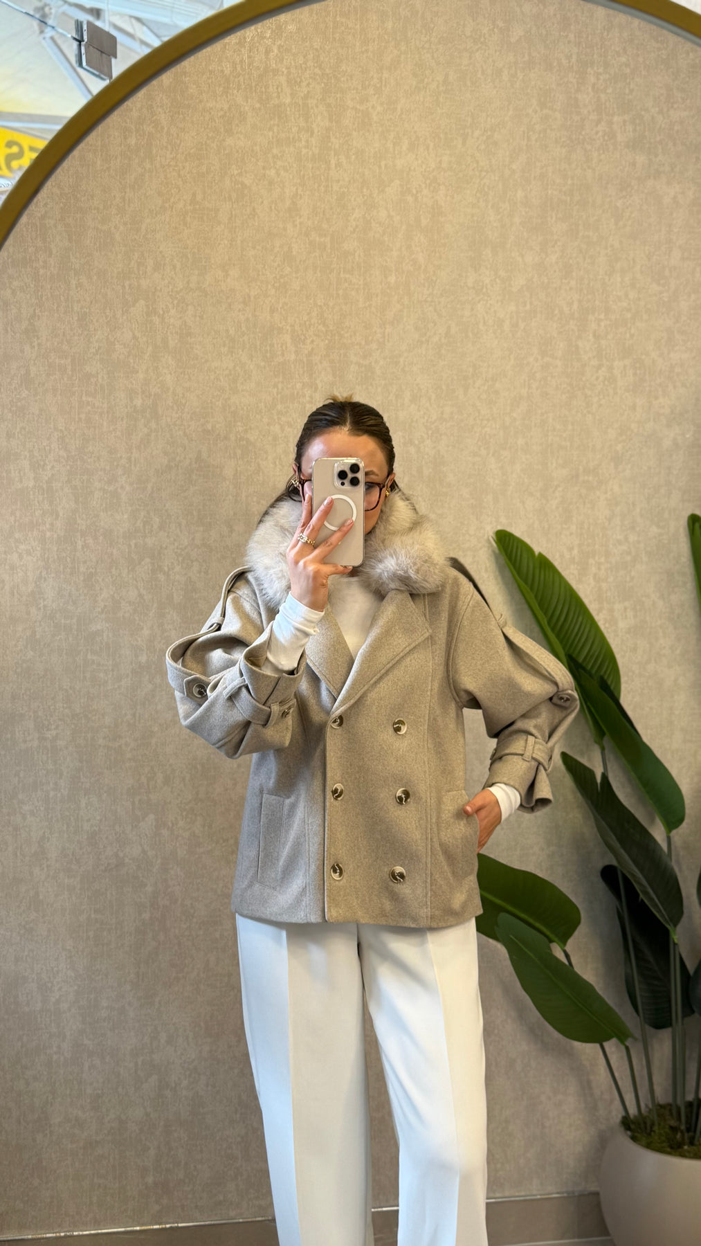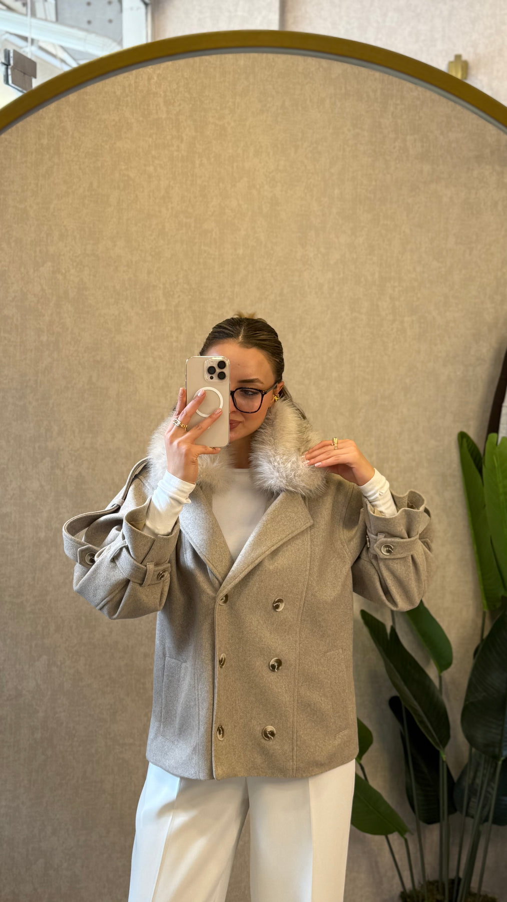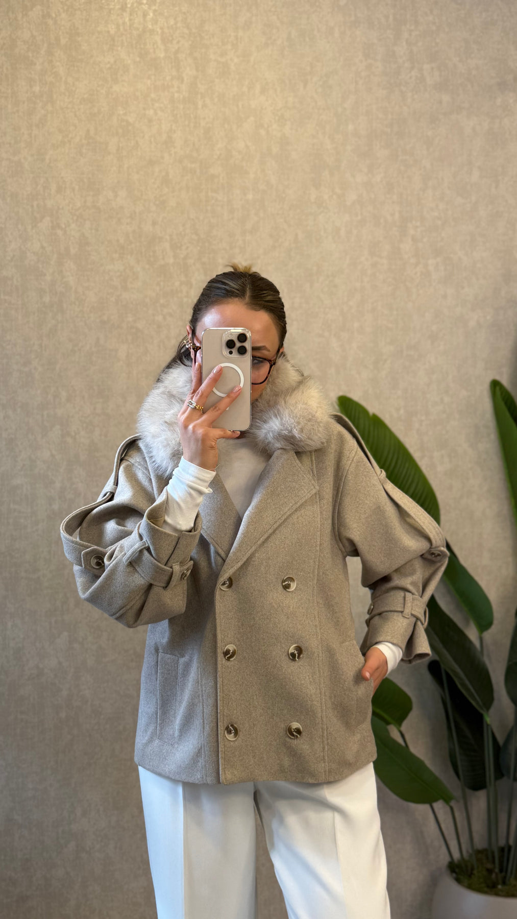 KÜRK YAKA (ÇIKARILABİLİR) VİZON KAŞE KABAN