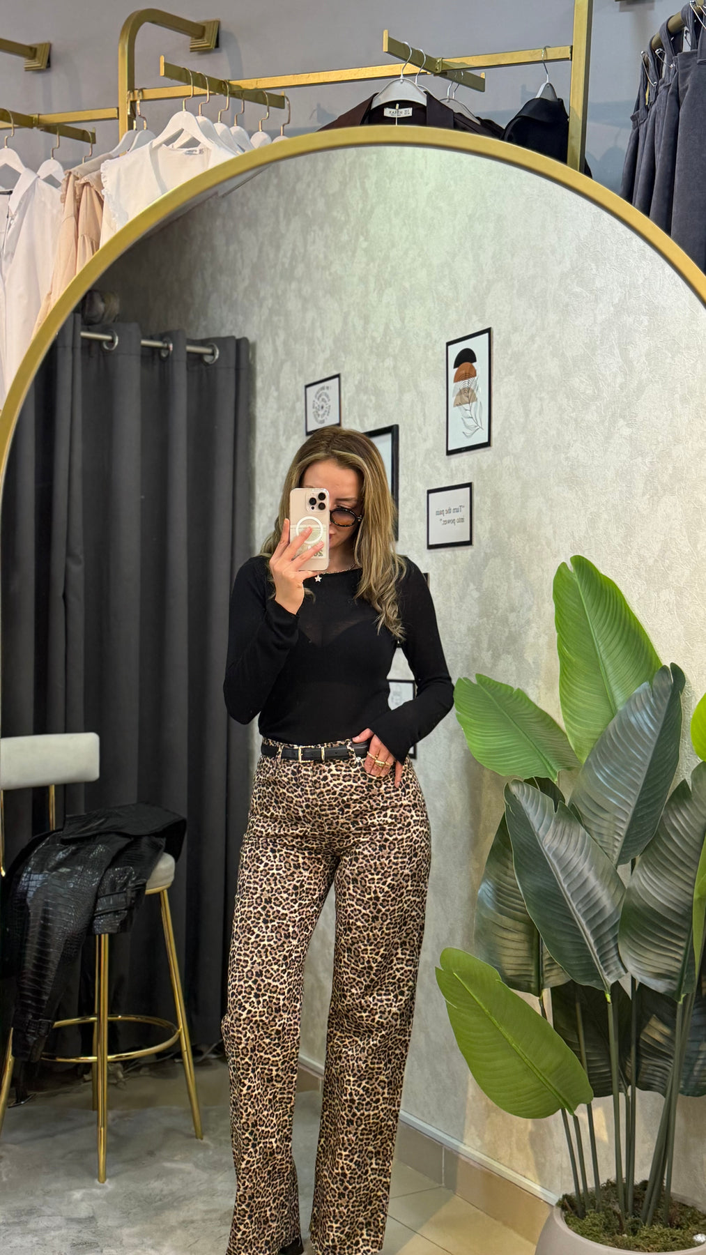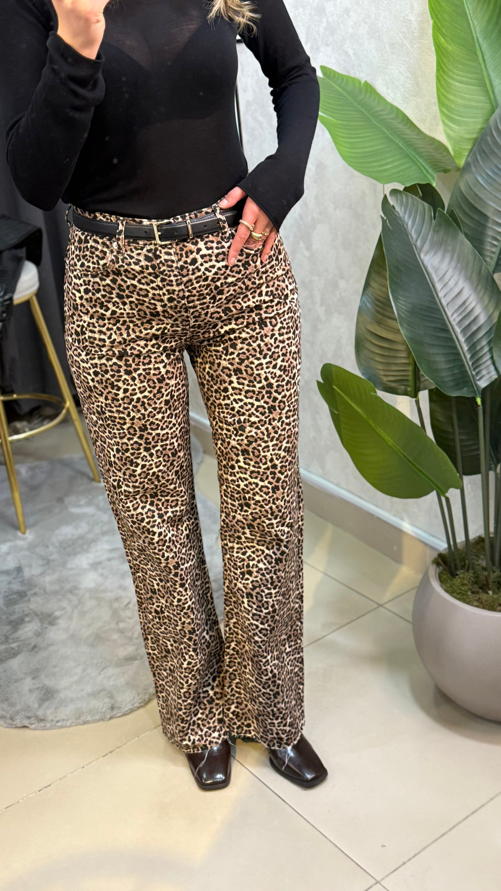 LEOPAR DESEN ULTRA YÜKSEK BEL PALAZZO KOT PANTOLON
