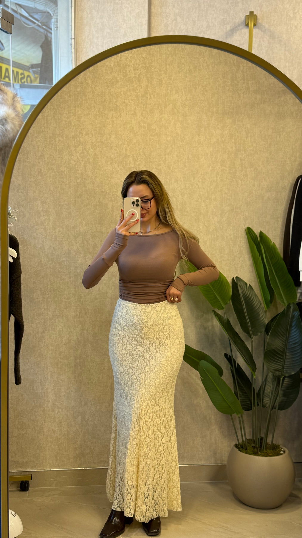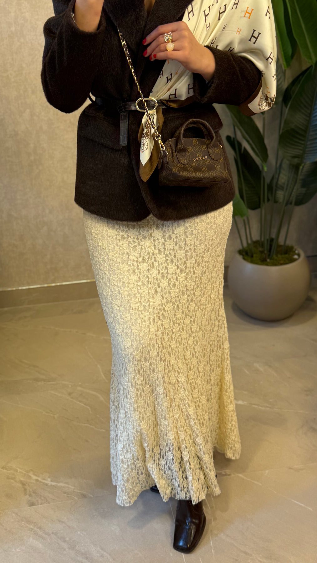 Dantel dokulu yapısı ve yüksek bel kesimiyle vücuda zarif bir form verir. İç göstermeyen, hafif esnek kumaşı sayesinde gün boyu konforlu bir kullanım sunar. Günlük kombinlerden akşam şıklığına kolayca uyum sağlar.
